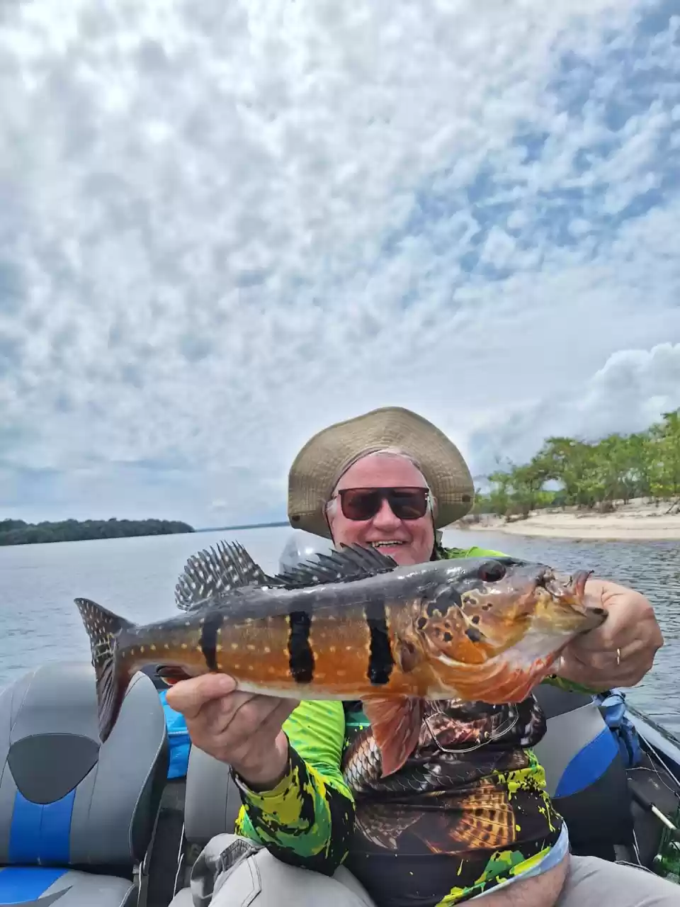 Peixes Encontrados: Pirarara, filhotes, tucunaré, tambaqui, trinchara cachara, cachorra, bicudas e outras espécies.